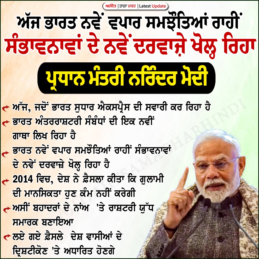 15 ਅੱਜ ਭਾਰਤ ਨਵੇਂ ਵਪਾਰ ਸਮਝੌਤਿਆਂ ਰਾਹੀਂ ਸੰਭਾਵਨਾਵਾਂ ਦੇ ਨਵੇਂ ਦਰਵਾਜ਼ੇ ਖੋਲ੍ਹ ਰਿਹਾ -ਪ੍ਰਧਾਨ ਮੰਤਰੀ ਮੋਦੀ