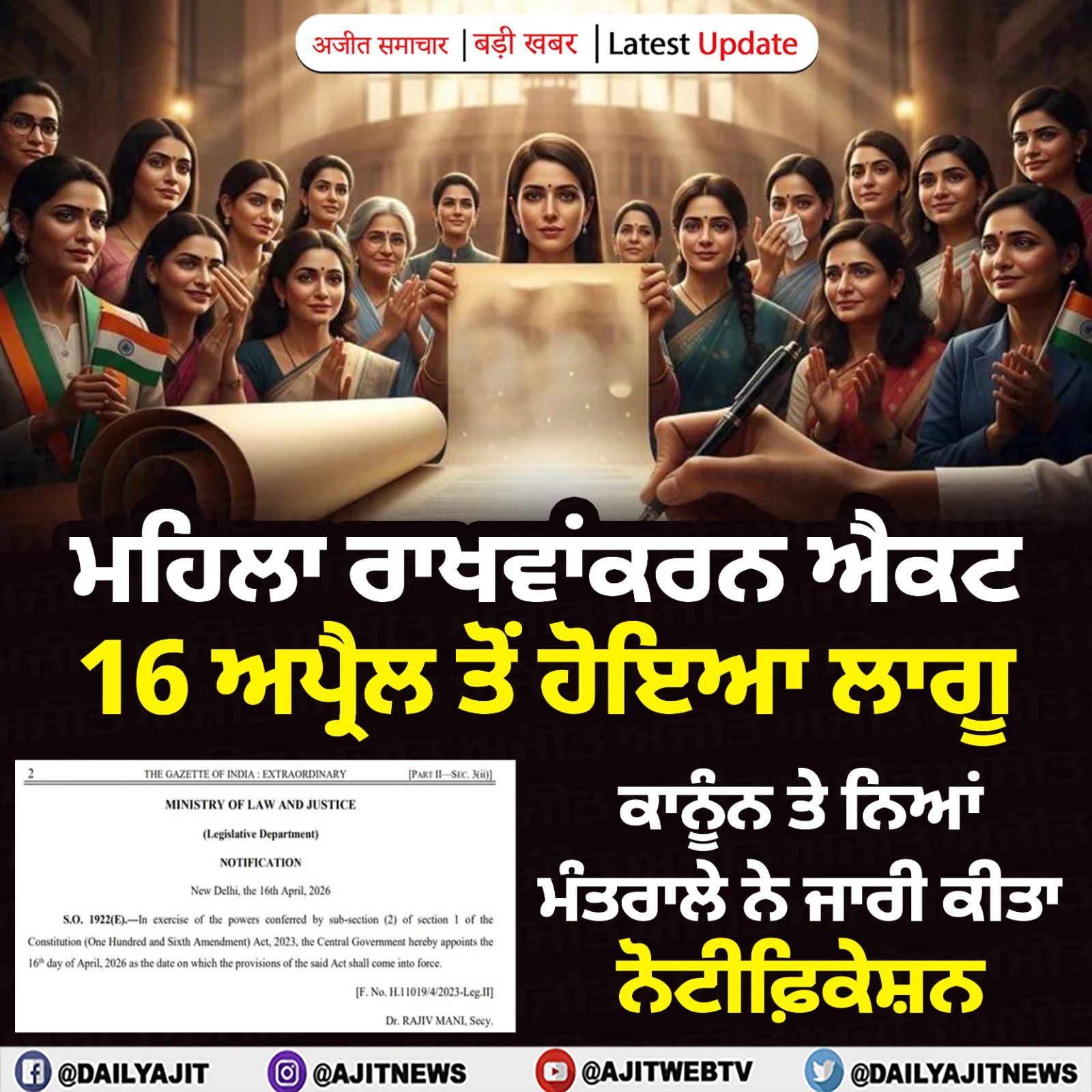 ਇਤਿਹਾਸਕ ਬਦਲਾਅ ਦੀ ਦਹਿਲੀਜ਼ ’ਤੇ ਸੰਸਦ, ਅੱਜ ਪੇਸ਼ ਹੋਵੇਗਾ ਮਹਿਲਾ ਰਾਖਵਾਂਕਰਨ ਸੋਧ ਬਿੱਲ, ਜਾਣੋ ਕੀ ਹੈ ਖ਼ਾਸ 2026-04-16