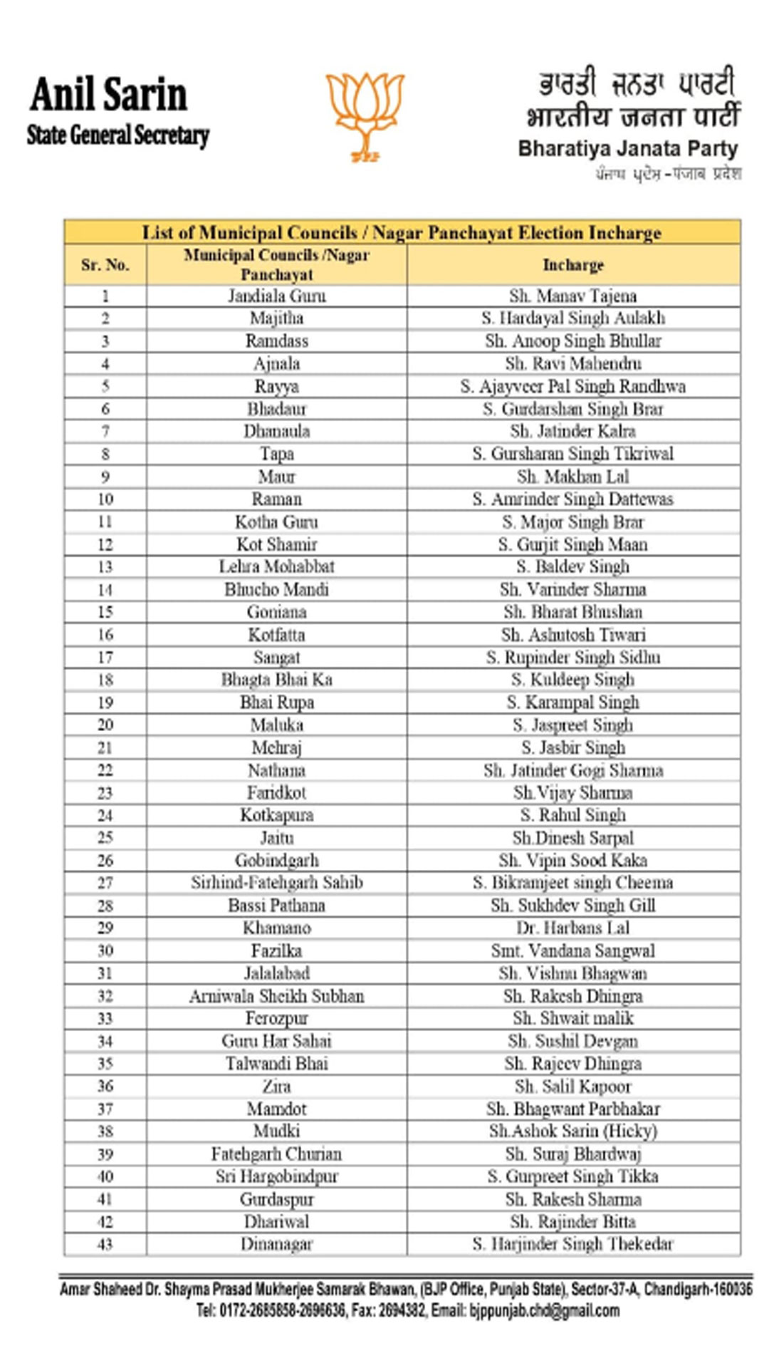 ਤਾਜ਼ਾ ਖ਼ਬਰਾਂ ਭਾਜਪਾ ਪੰਜਾਬ ਨੇ ਖਿੱਚੀ ਤਿਆਰੀ - ਨਗਰ ਨਿਗਮਾਂ ਅਤੇ ਨਗਰ ਕੌਂਸਲਾਂ ਲਈ ਇੰਚਾਰਜ ਅਤੇ ਸਹਿ ਇੰਚਾਰਜ ਕੀਤੇ ਨਿਯੁਕਤ 3 hours 11 minutes ago